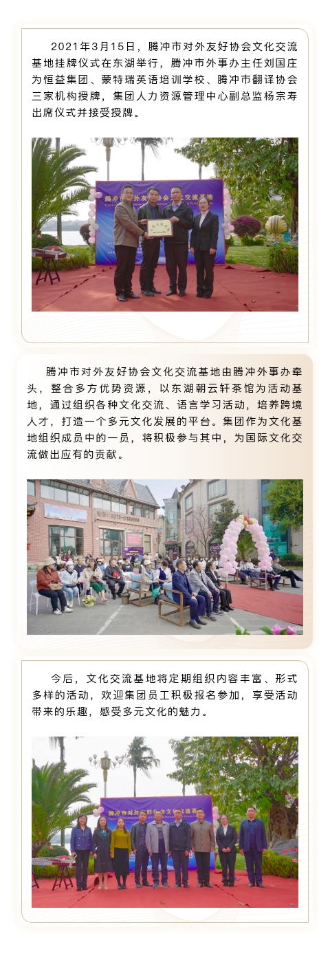恒益集團(tuán)掛牌“騰沖市對(duì)外友好協(xié)會(huì)文化交流基地” 來源: 瀏覽量:6516 日期:2021-03-16 分享到: 上一篇:爛刺溝尾礦庫驗(yàn)收公示內(nèi)容 下一篇:“東山之下,原創(chuàng)詩歌、散文分享會(huì)”在東山書院隆重舉行