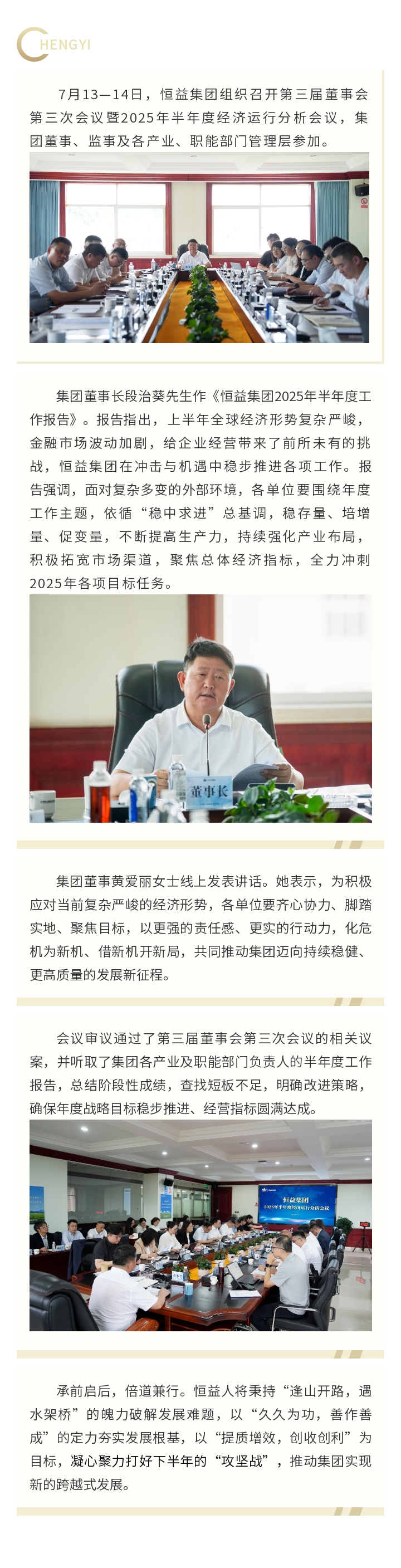 恒益集團(tuán)召開第三屆董事會第三次會議暨2025年半年度經(jīng)濟(jì)運行分析會議 來源: 瀏覽量:1316 日期:2025-07-14 分享到: 上一篇:恒益集團(tuán)2025屆“益幟力”管培生集訓(xùn)開營啦! 下一篇:北緯25°的清涼約定~騰沖東山草原·云端19℃夏